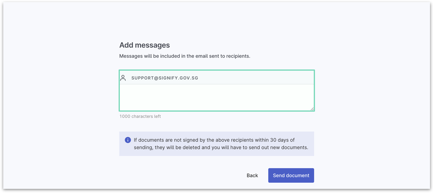 If "Email to recipient" mode was chosen, you will be allow to send a message (instructions, notes) to each recipient.&#x20;